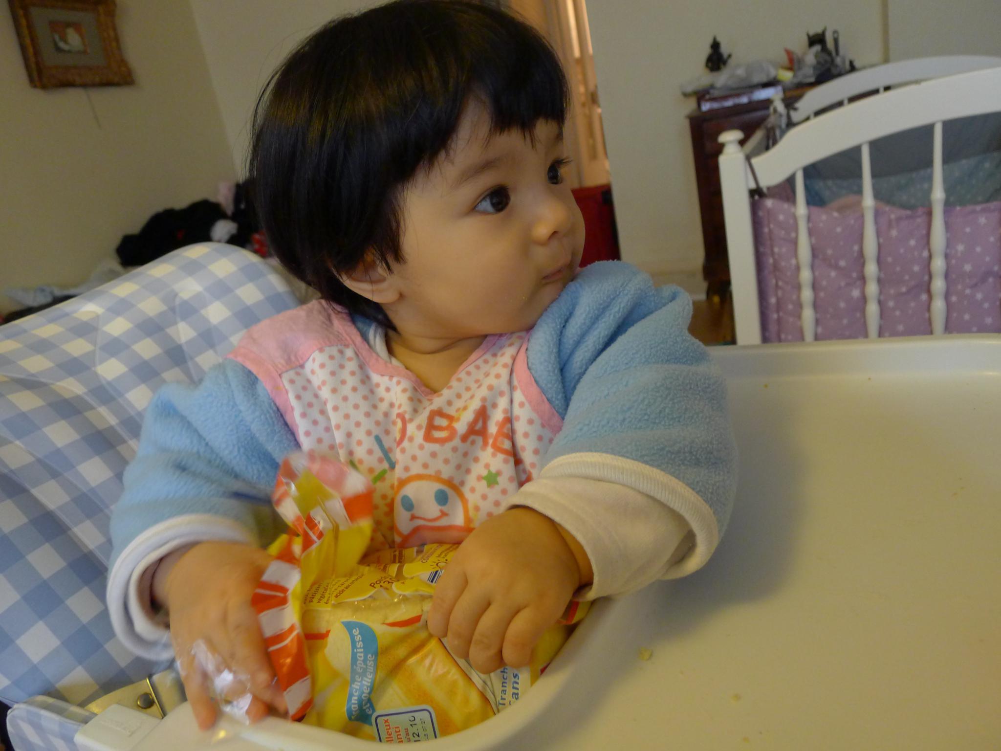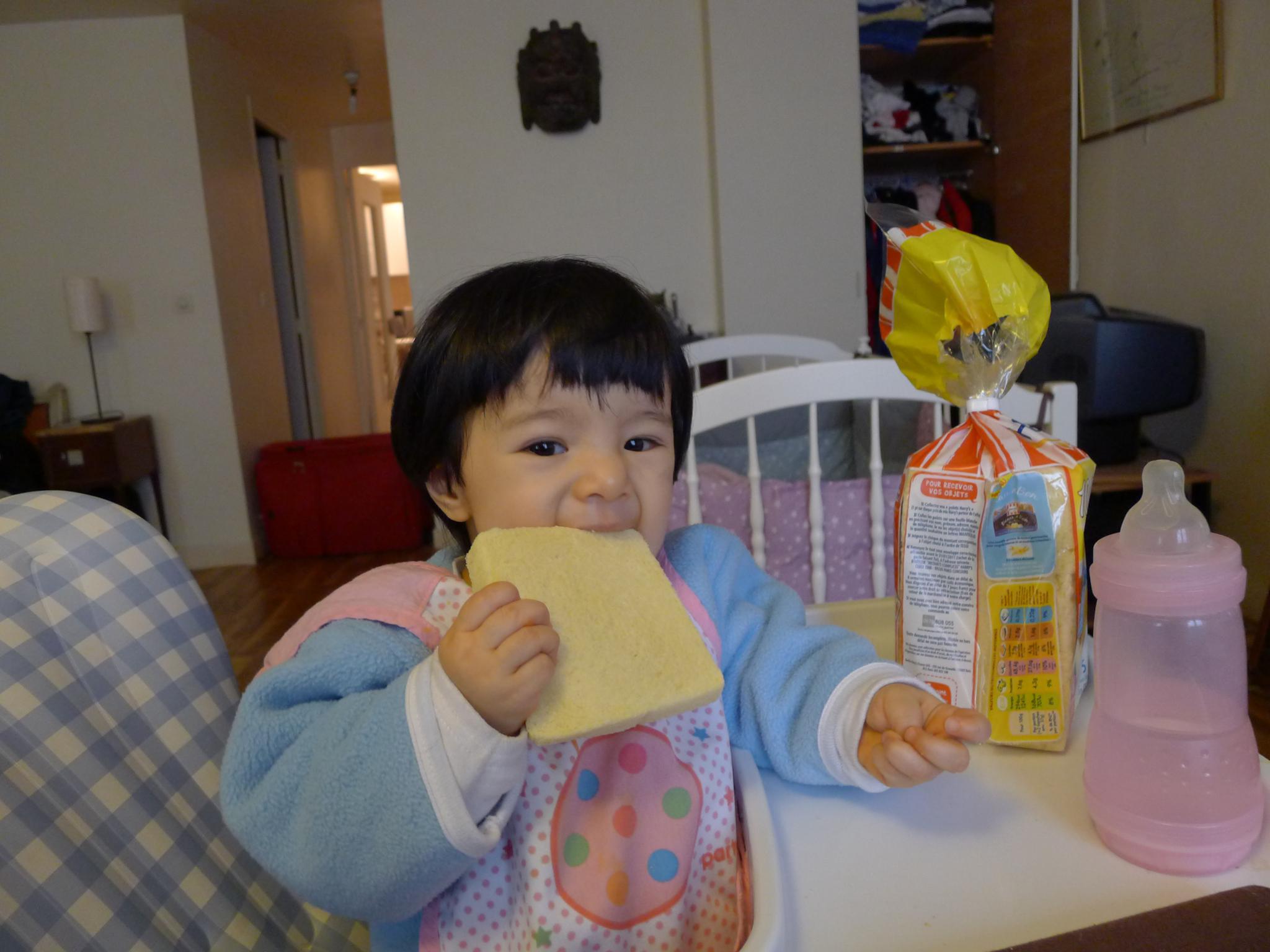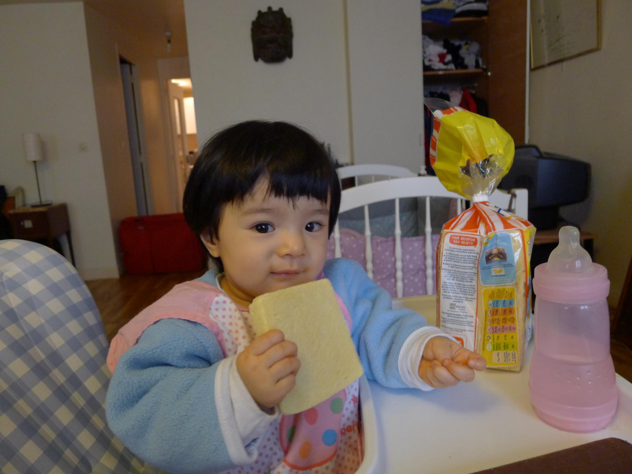 吃完了自己的饭,看到我吃面包,也要吃。