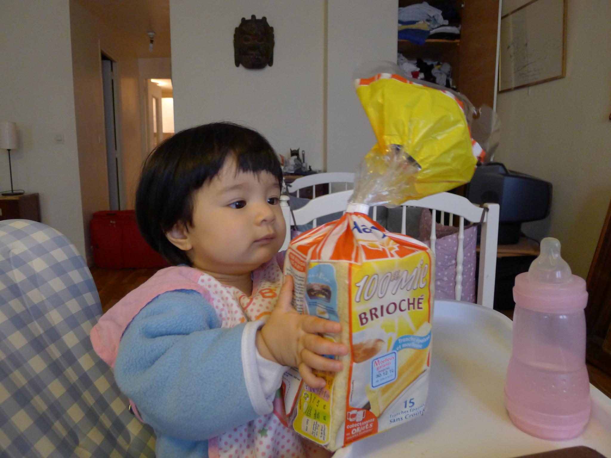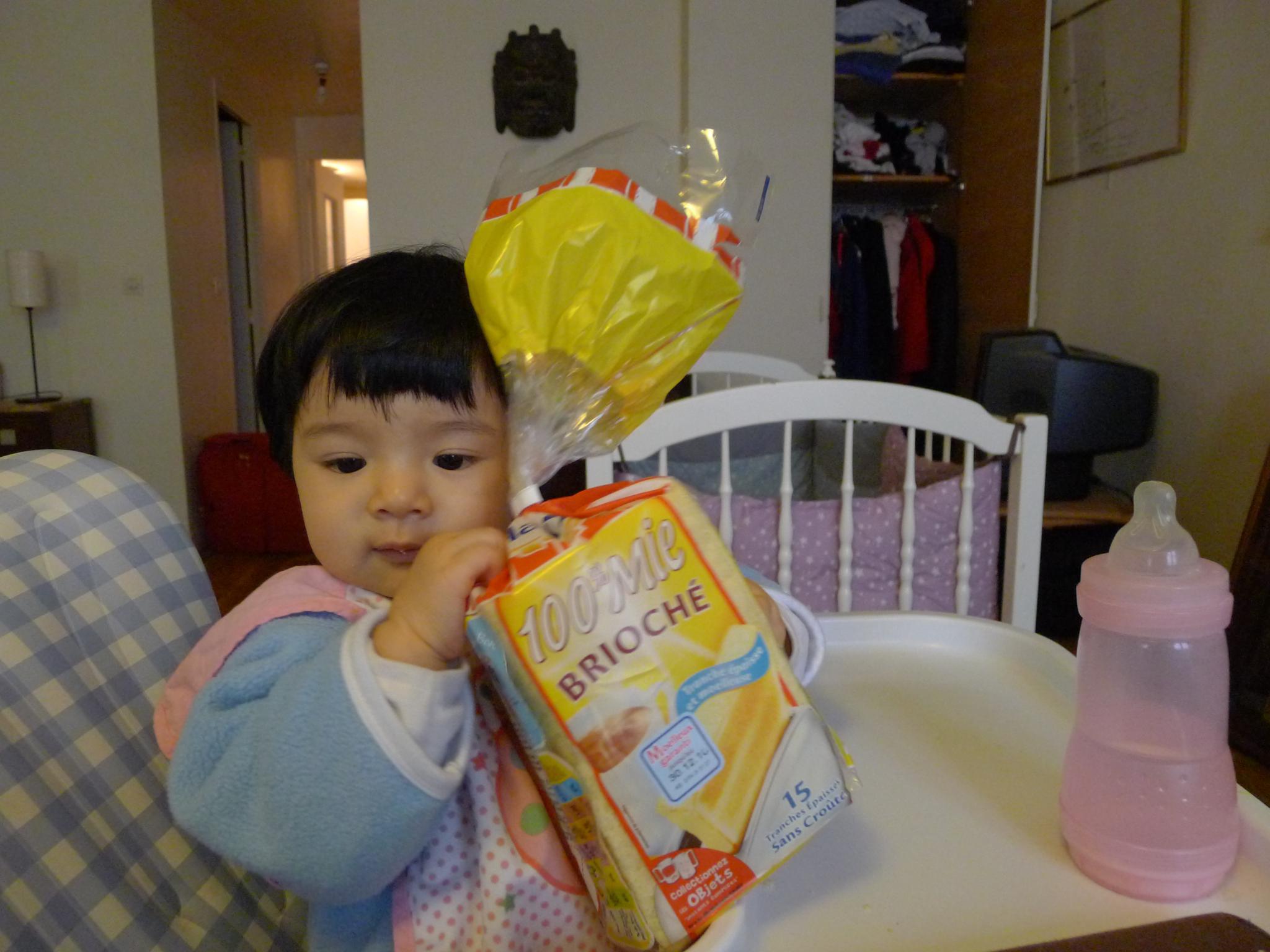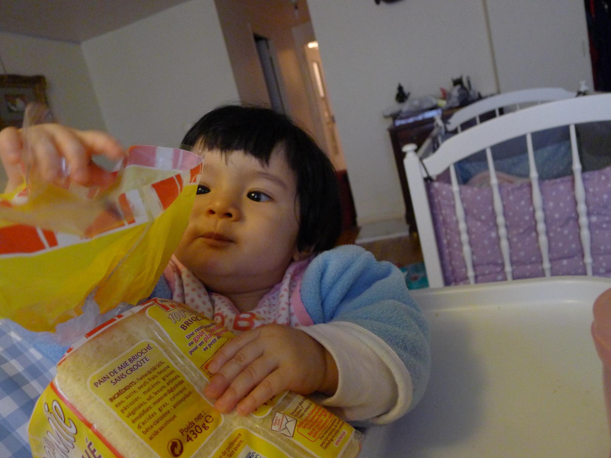 吃完了自己的饭,看到我吃面包,也要吃。