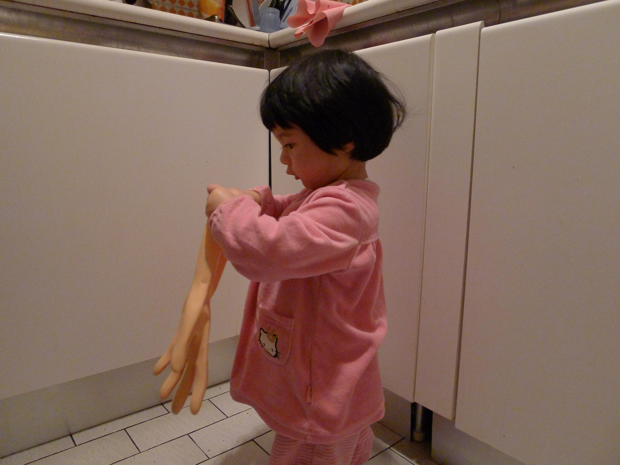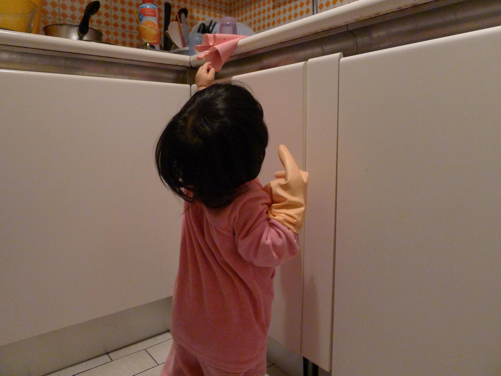 《靓太唔易做》是《绝望的主妇》的港版译名,我觉得很好笑,这天Amelie小朋友上演了一系列剧情。先在厨房里勤劳地试图戴上手套干家务。