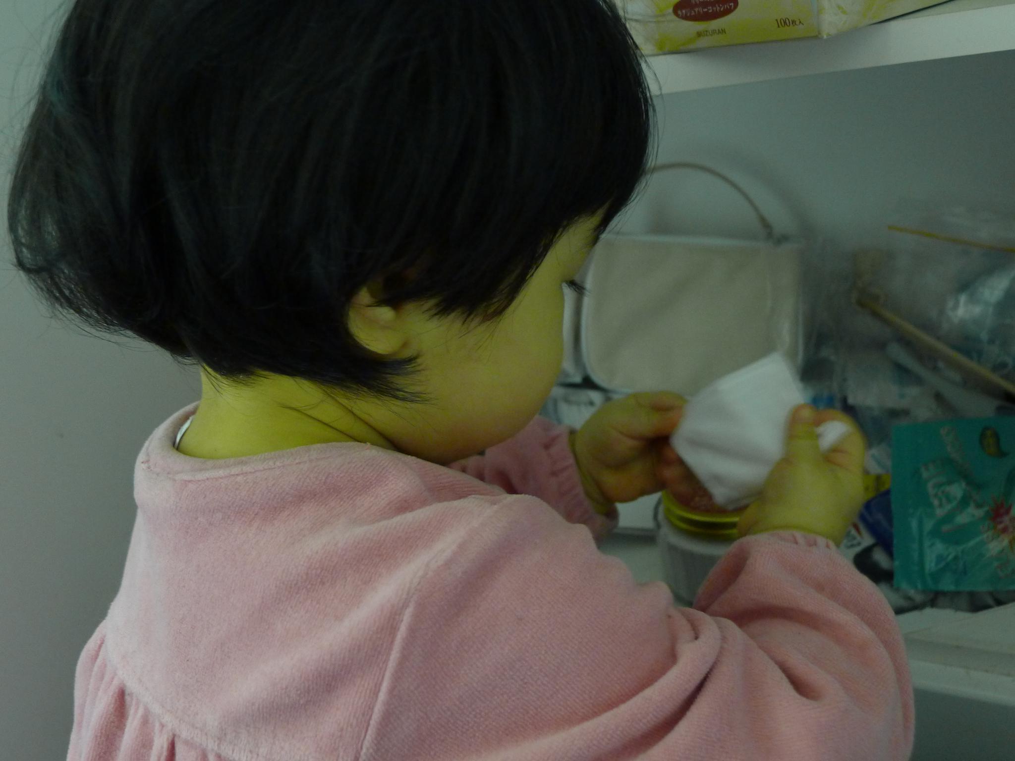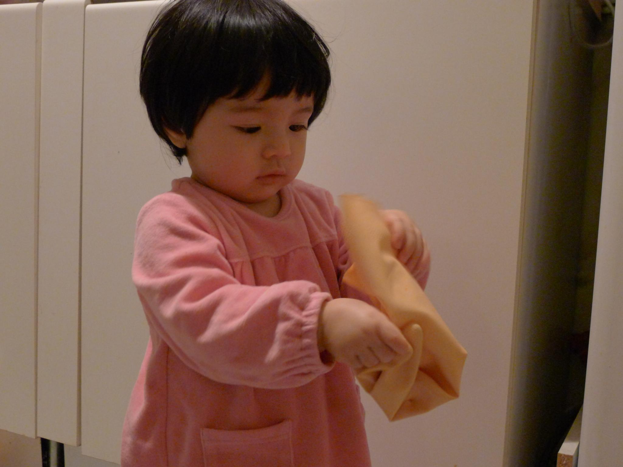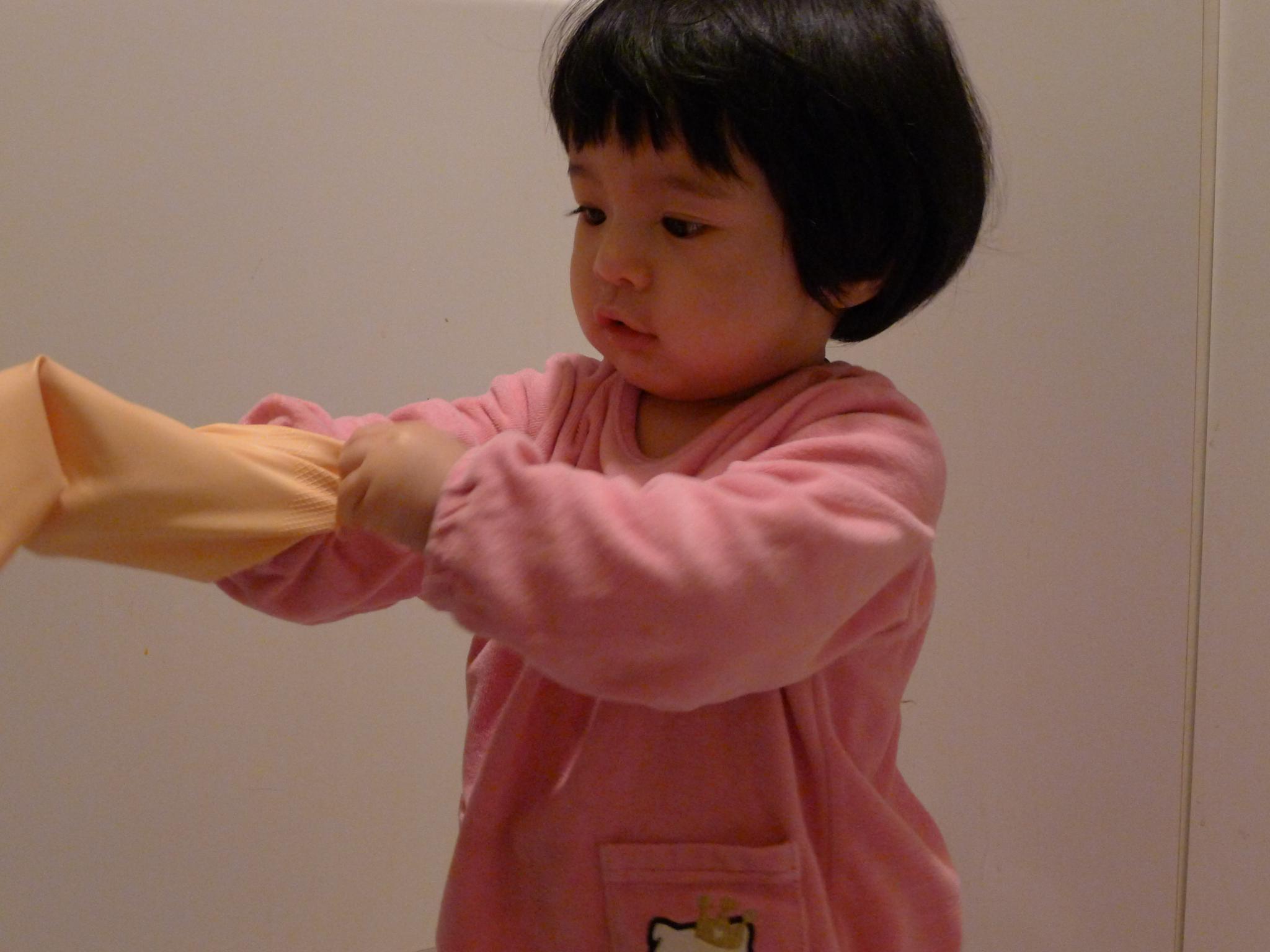 01.发现了晾衣架上的手套,居然马上知道用法。