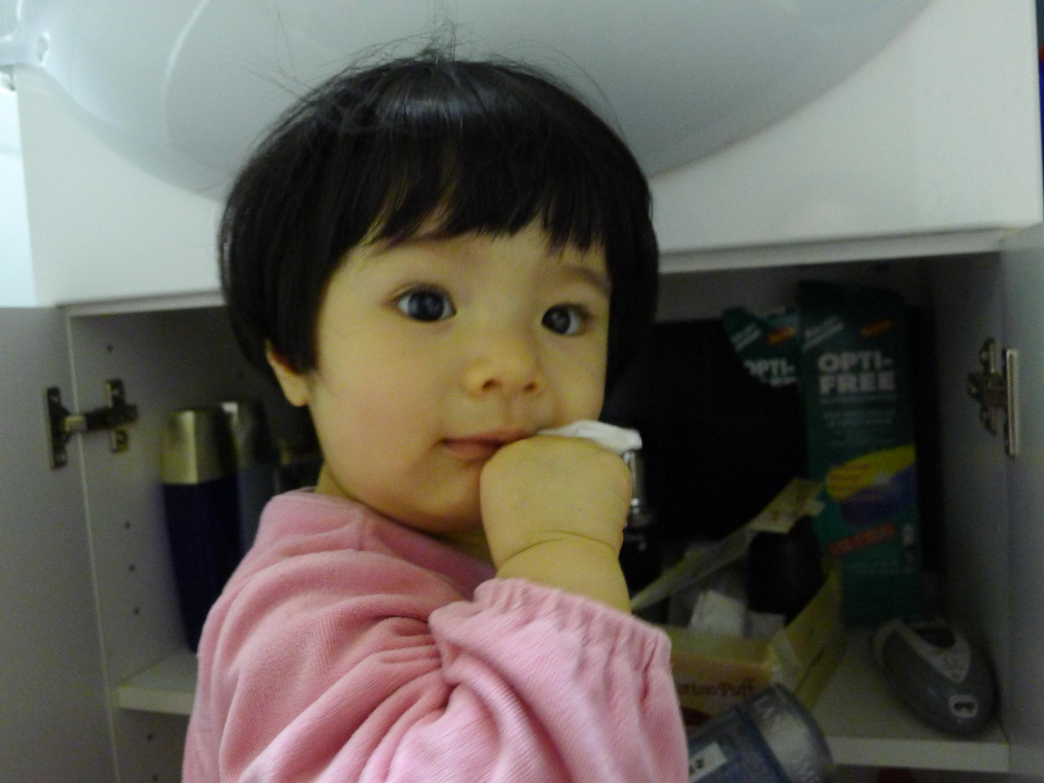 09.似模似样倒了点化妆水(还好她现在还不会开瓶盖,但是泵嘴型的护肤品她也知道在上面先按两下),风情万种地在脸上轻拍。我第一次看见小家伙的这种臭美行为时,简直就只能骇笑。