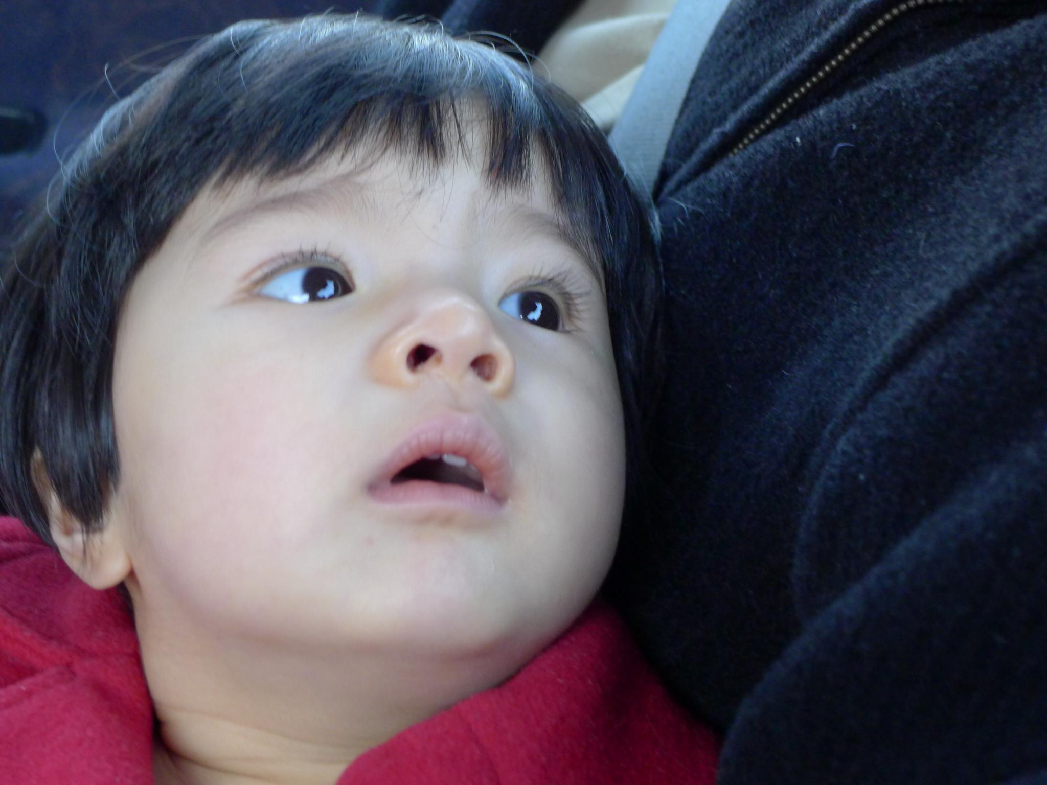 01.出发前换掉了家居的连体服,换上小裙子,这也是奶奶一个亲戚的礼物。这张照片看起来真是圆头圆脑袋。
