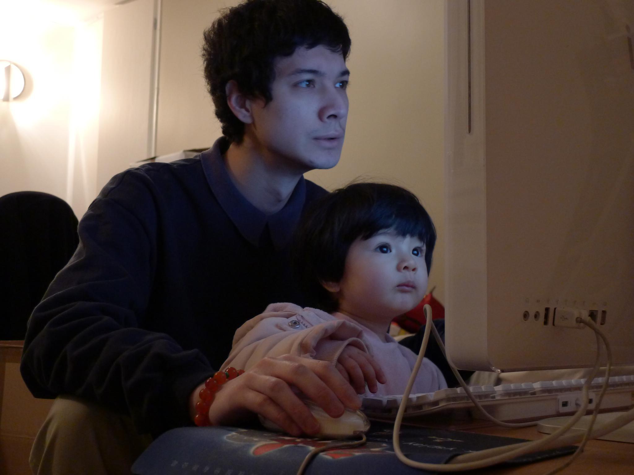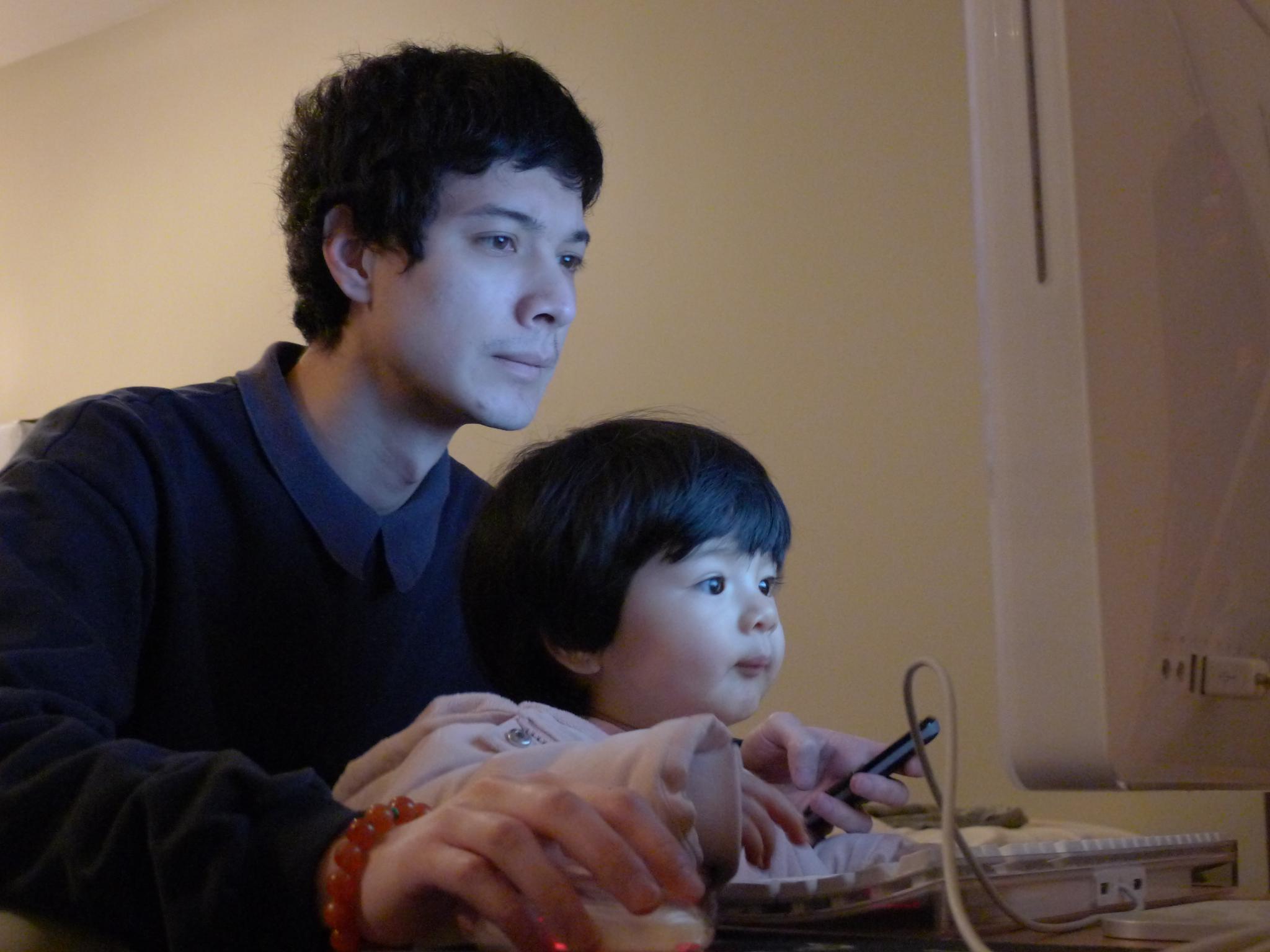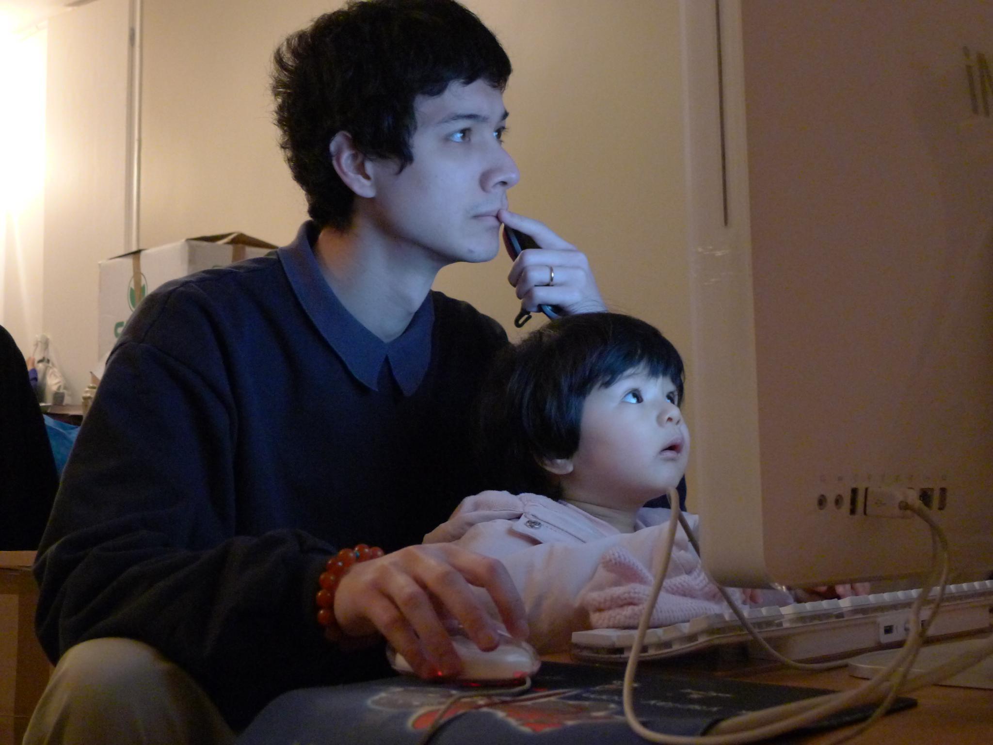 搬家后好几天没有网络,这天JF开始捣鼓无线,Amelie也挤进去掺和。