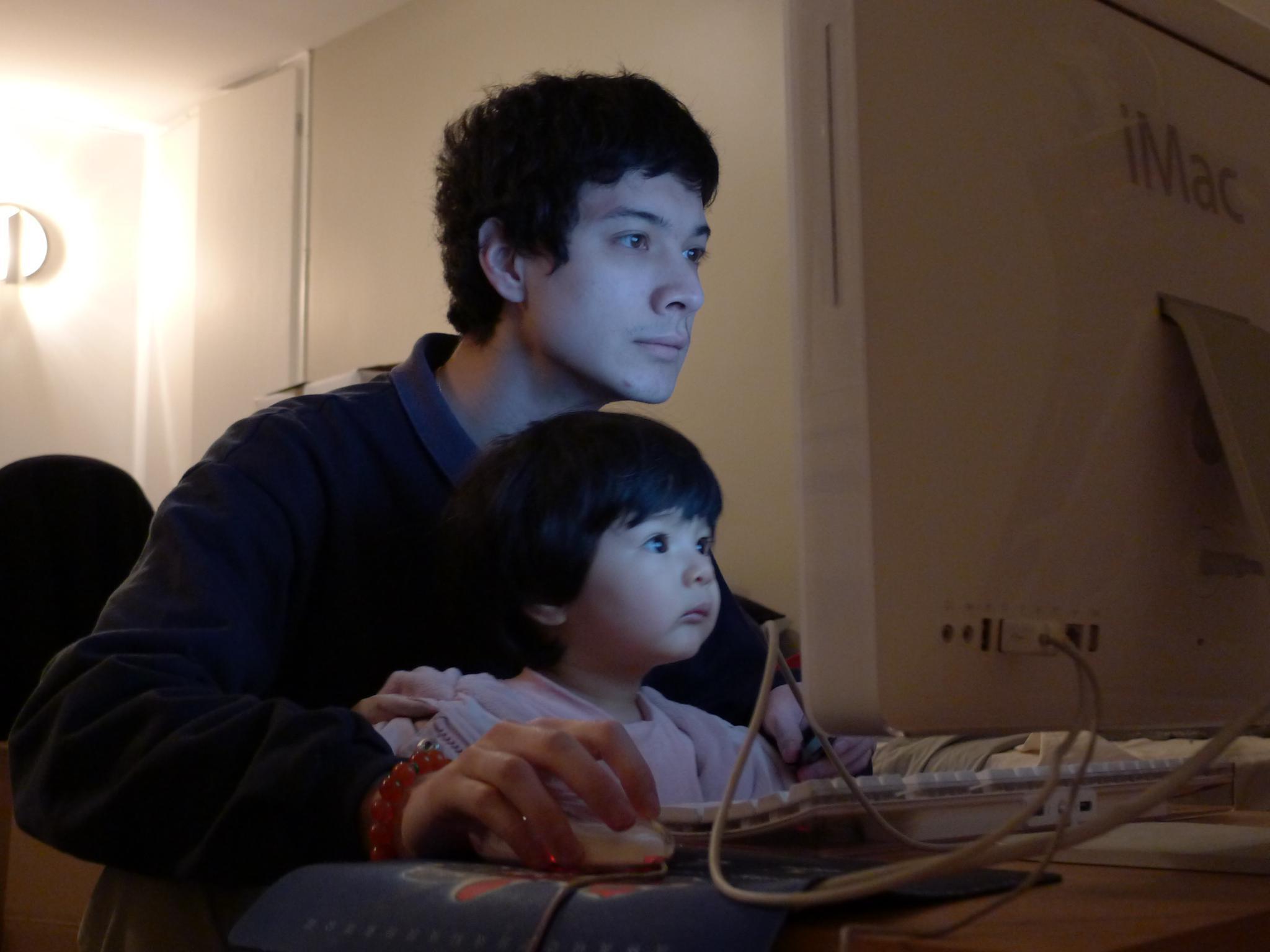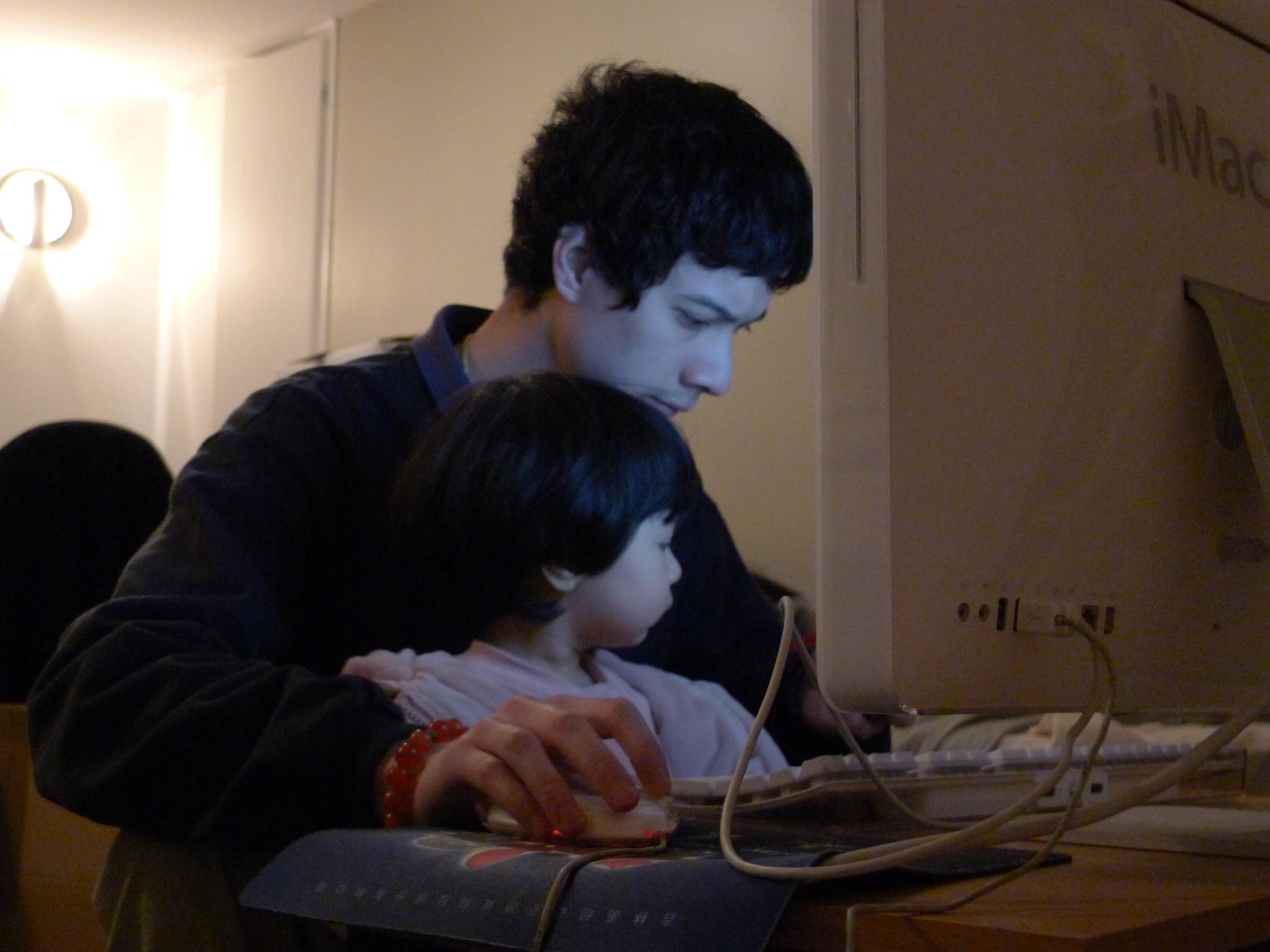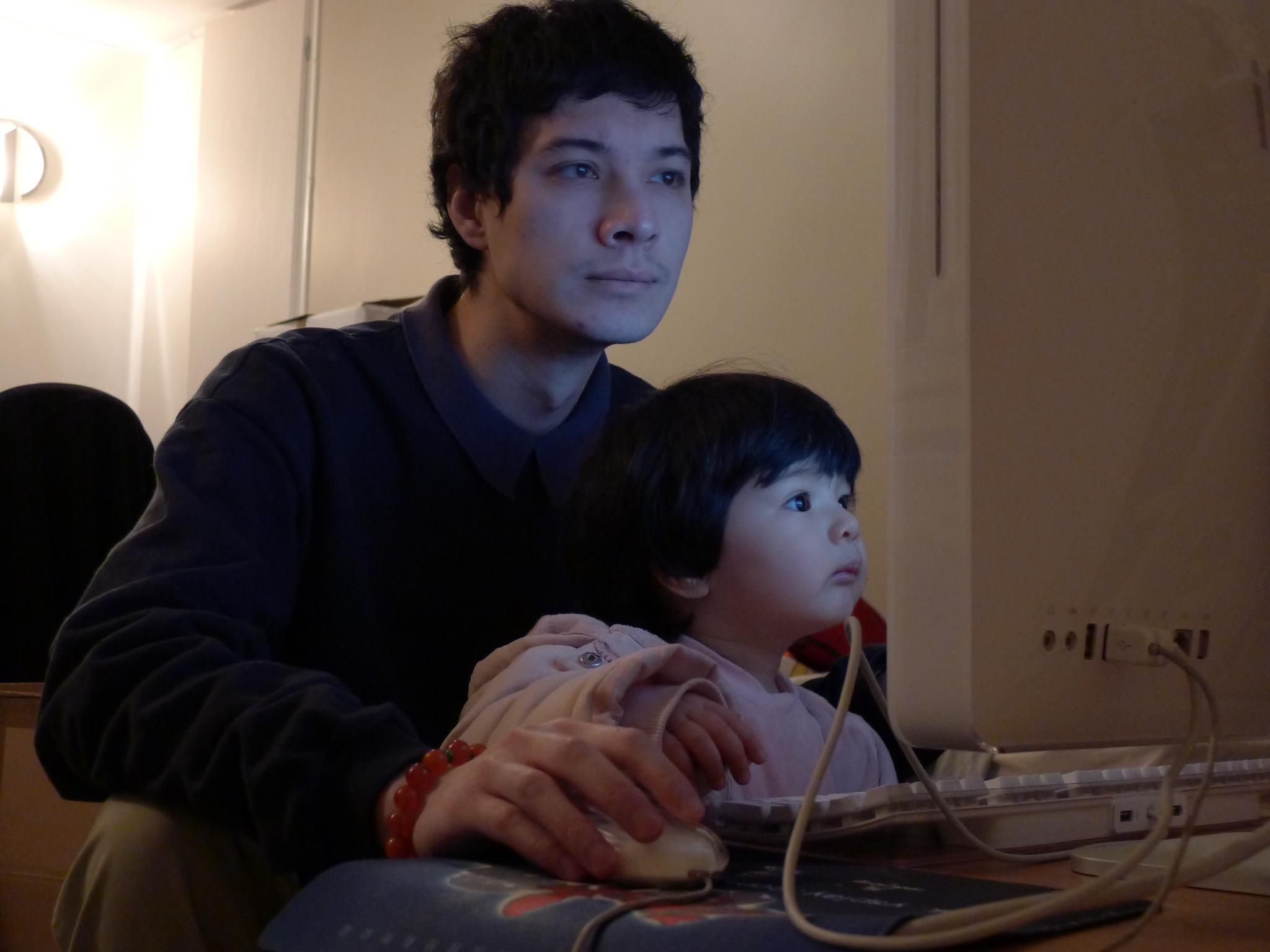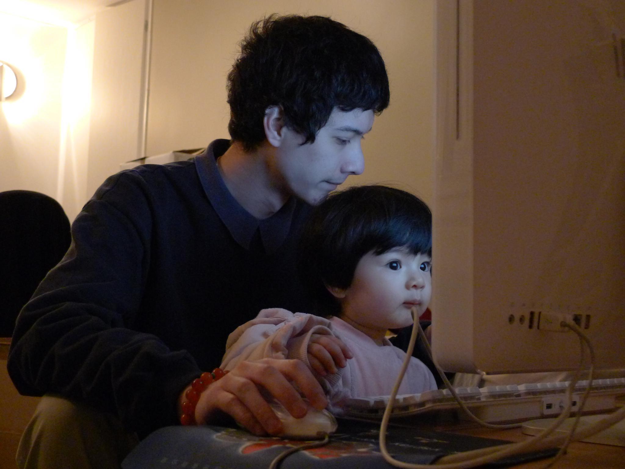 搬家后好几天没有网络,这天JF开始捣鼓无线,Amelie也挤进去掺和。