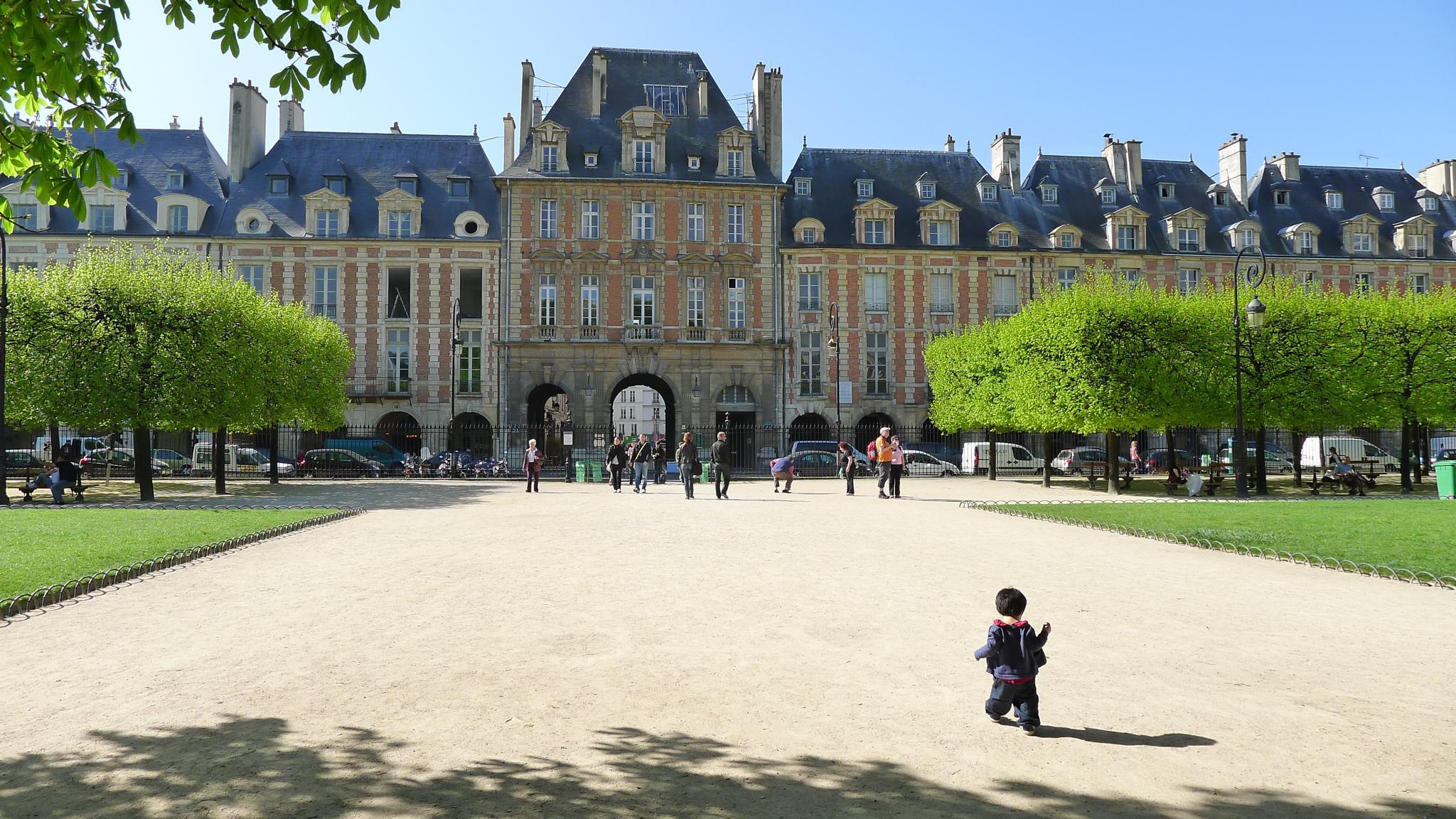 07.广场呈正方形,四周围着39幢带拱廊的红砖建筑,不少名人曾居于此,比如6号就是雨果的住所,现在是雨果博物馆。阳光下快活奔跑的小背影。