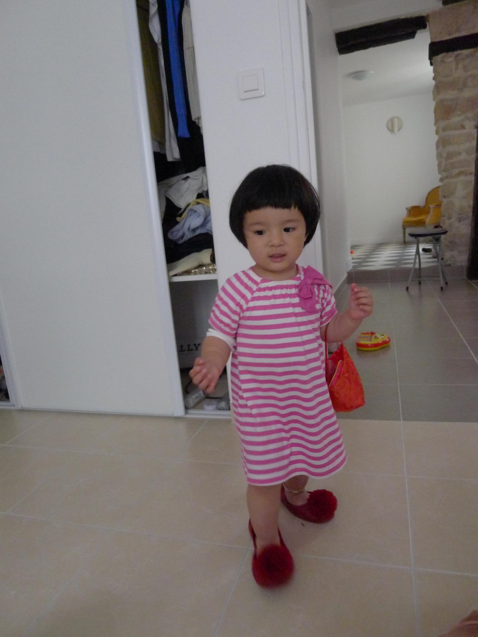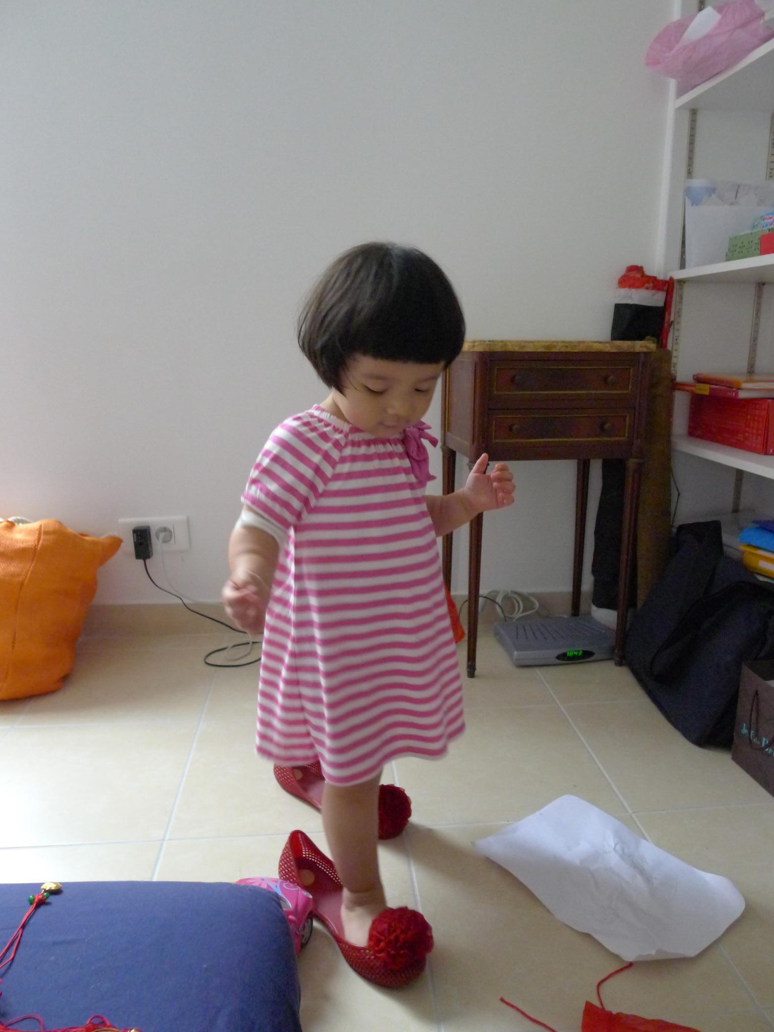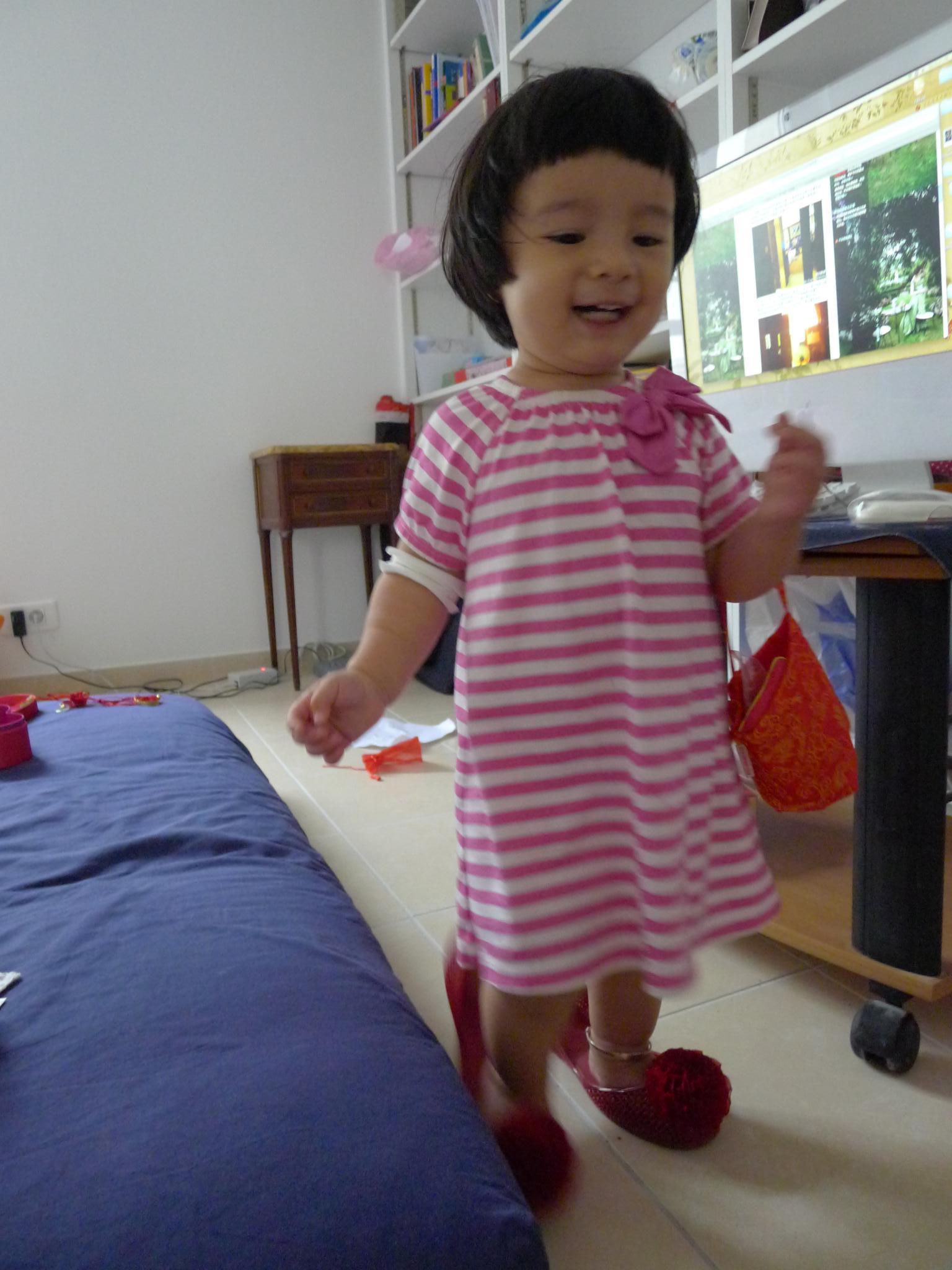 3我们焦头烂额地整理东西,Amelie可高兴了,东摸西看的,掏出一只冬天的帽子高高兴兴地戴上了,也不嫌热,还别着一只小发夹。8月5日。