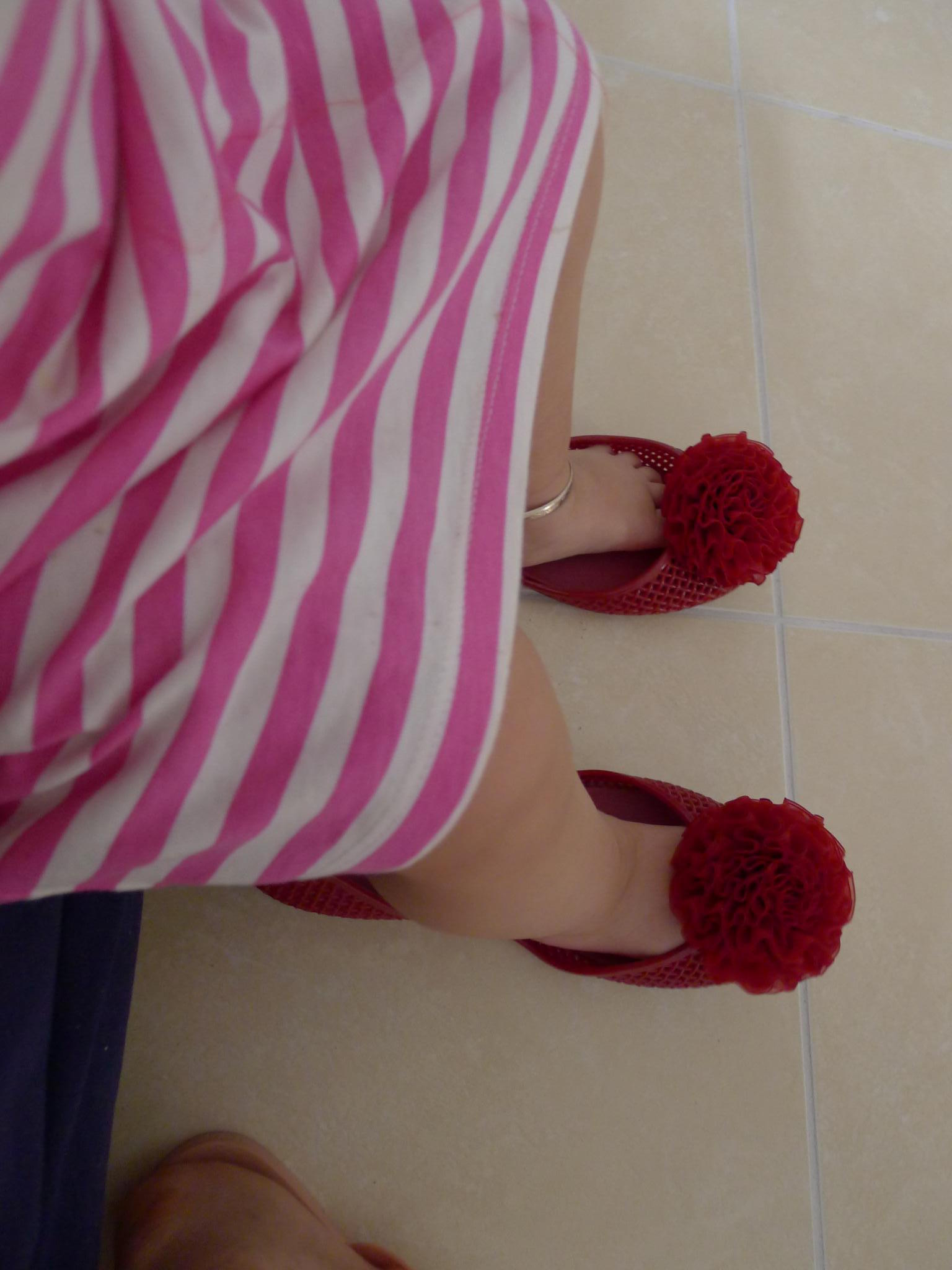Ithaca: 八哥穿的那件粉红色蝴蝶结连衣裙挺可爱的。你老红鞋好香艳,鞋尖还顶着朵红花儿!
