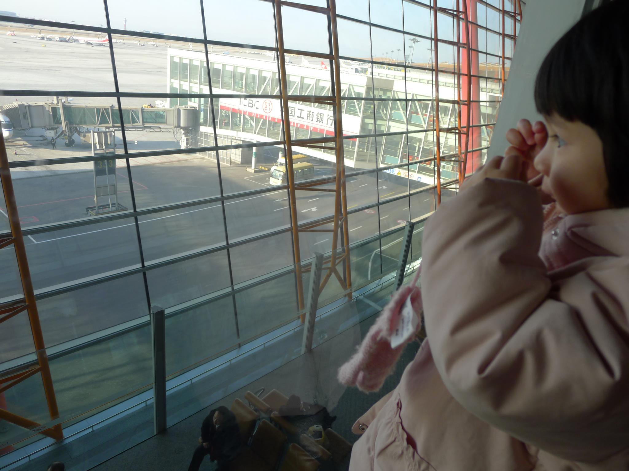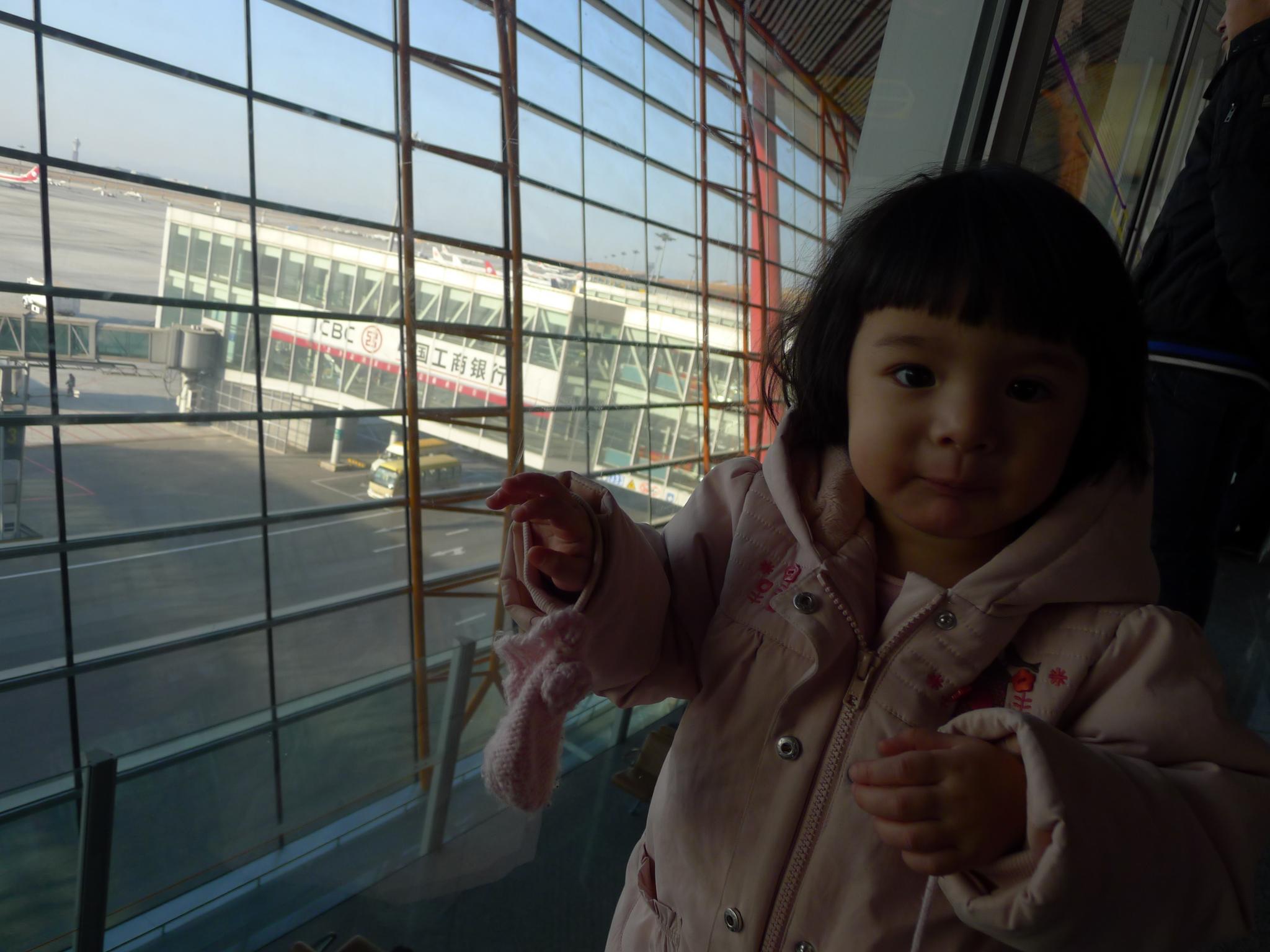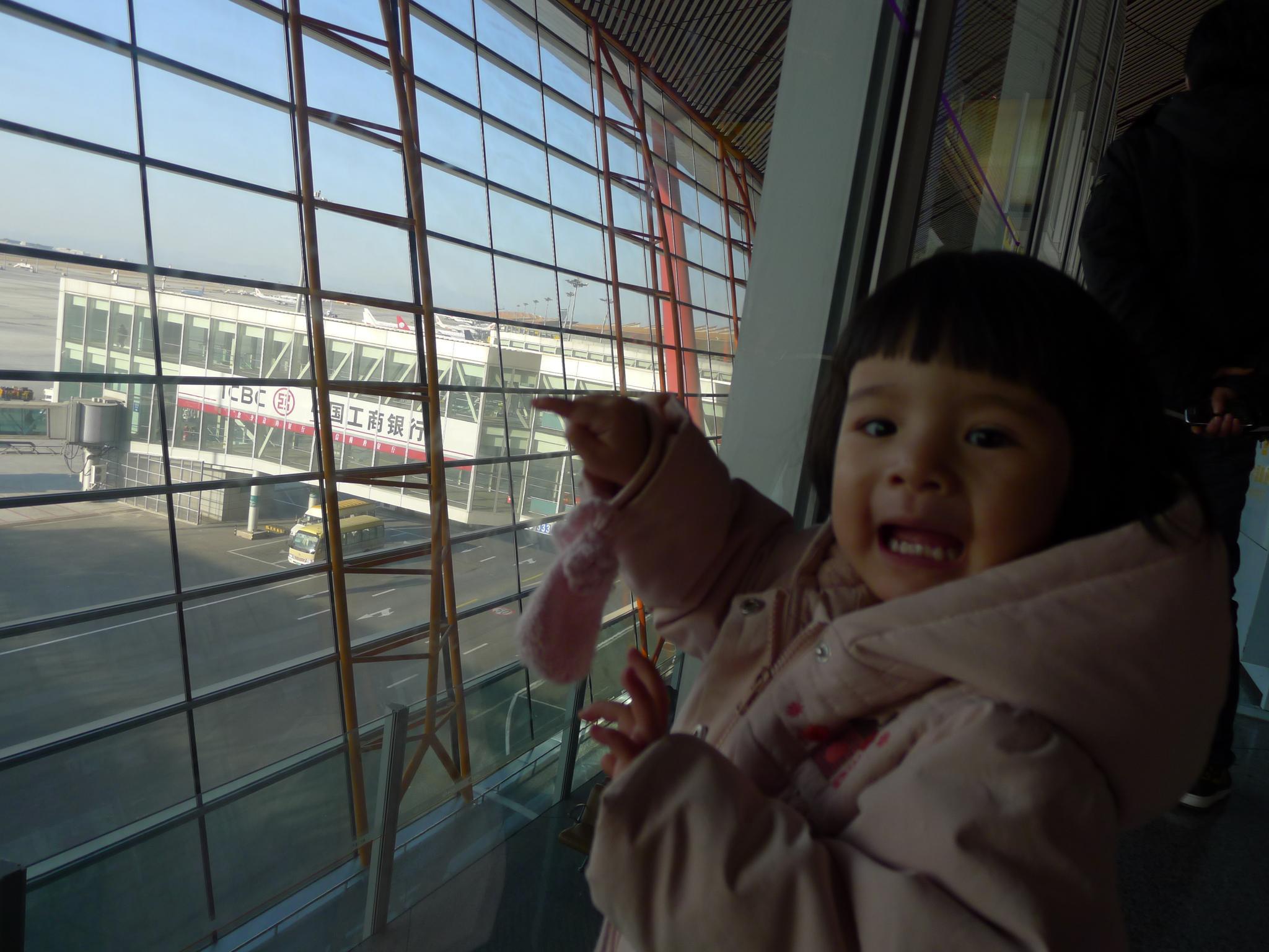 05.在首都机场,看到停着的飞机兴奋地指指点点。