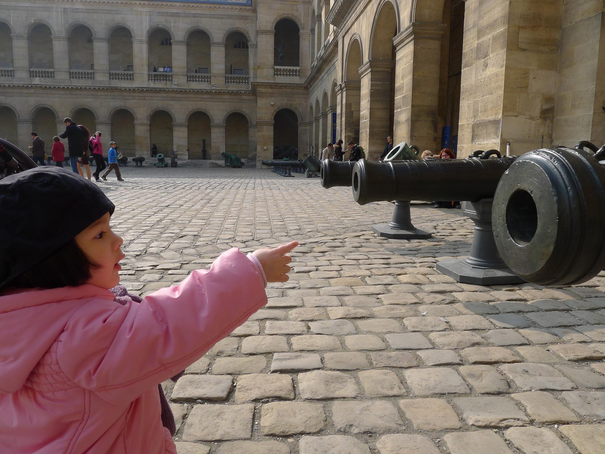 14.在另一个院子里看到很多大炮,变得很兴奋,很威严地大声叱咤起来,莫非小小的Amelie也已经知道大炮和军事和将领有关?
