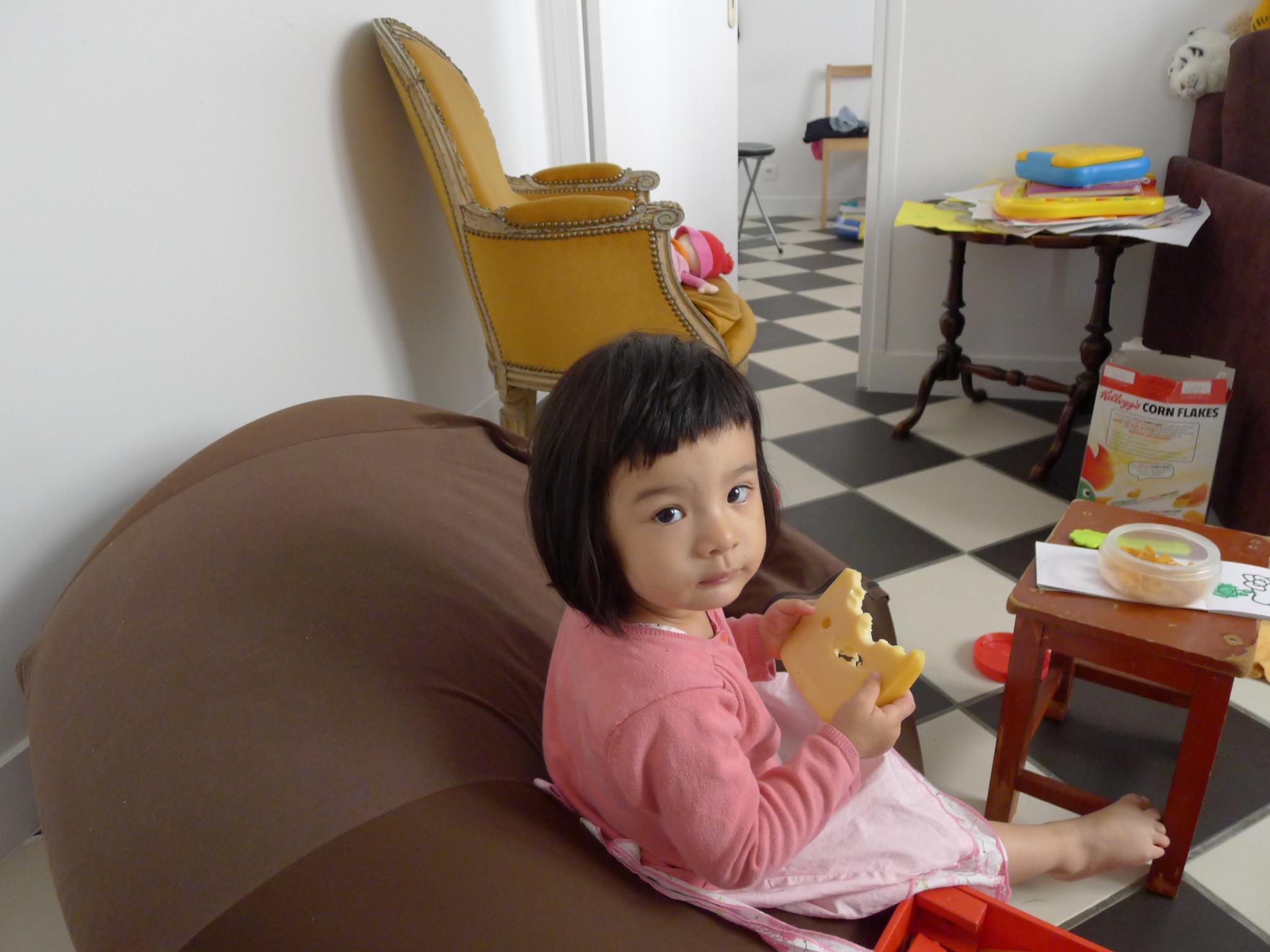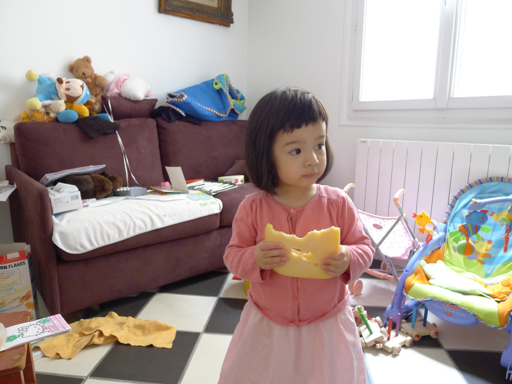 01.看到《猫和老鼠》里面的杰瑞经常吃奶酪,她也开始喜欢吃奶酪了,这天自己从冰箱里拿了奶酪整块抱着啃。